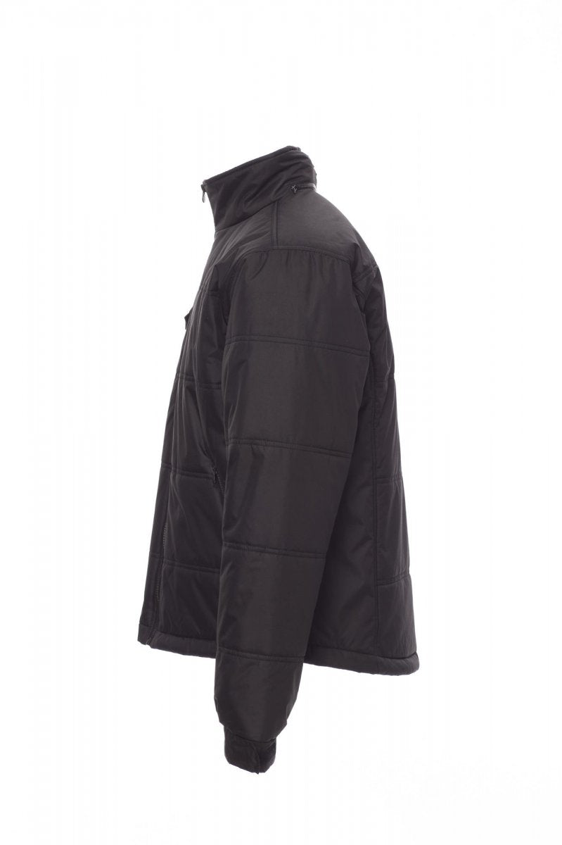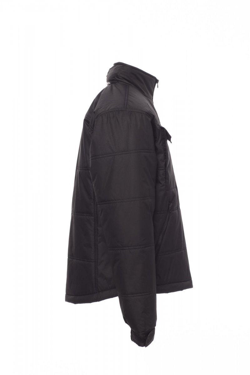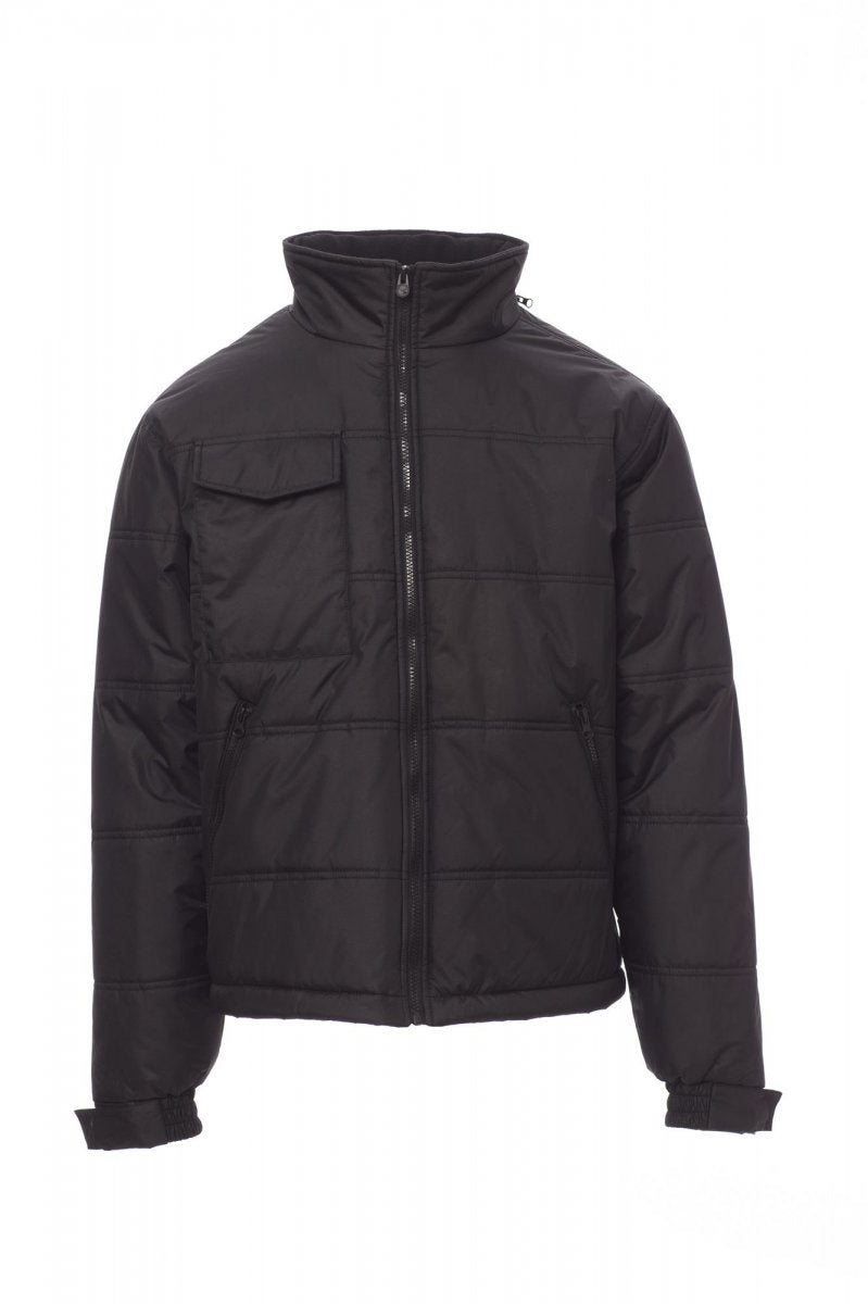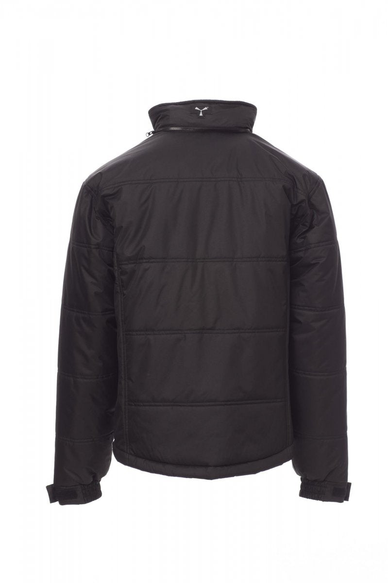 Gewatteerde jas met gevormde rug en doorgestikte gewatteerde voering, afgewerkt met voering met hoge dichtheid, binnenzijde kraag van fleece. Twee ruime zakken met rits, borstzak voor smartphone en een binnenzak. Uitvouwbare capuchon.