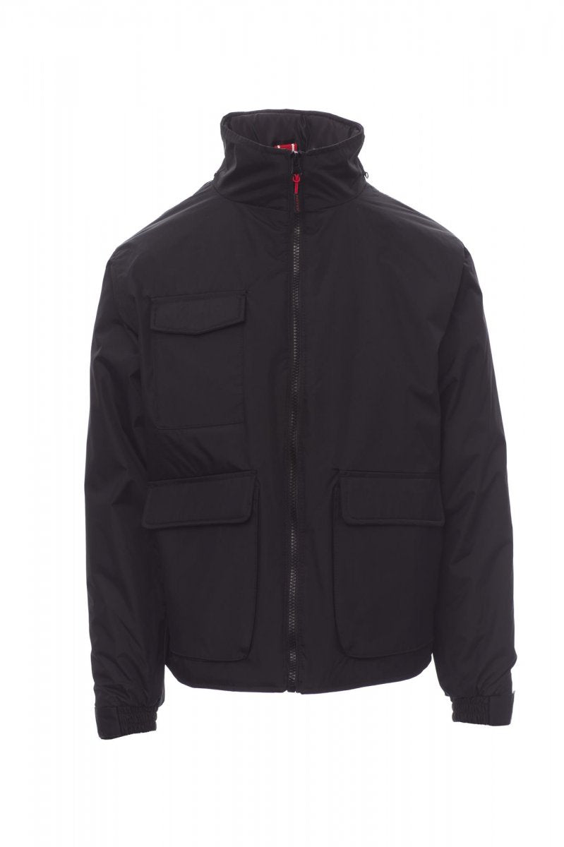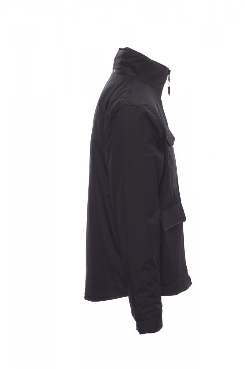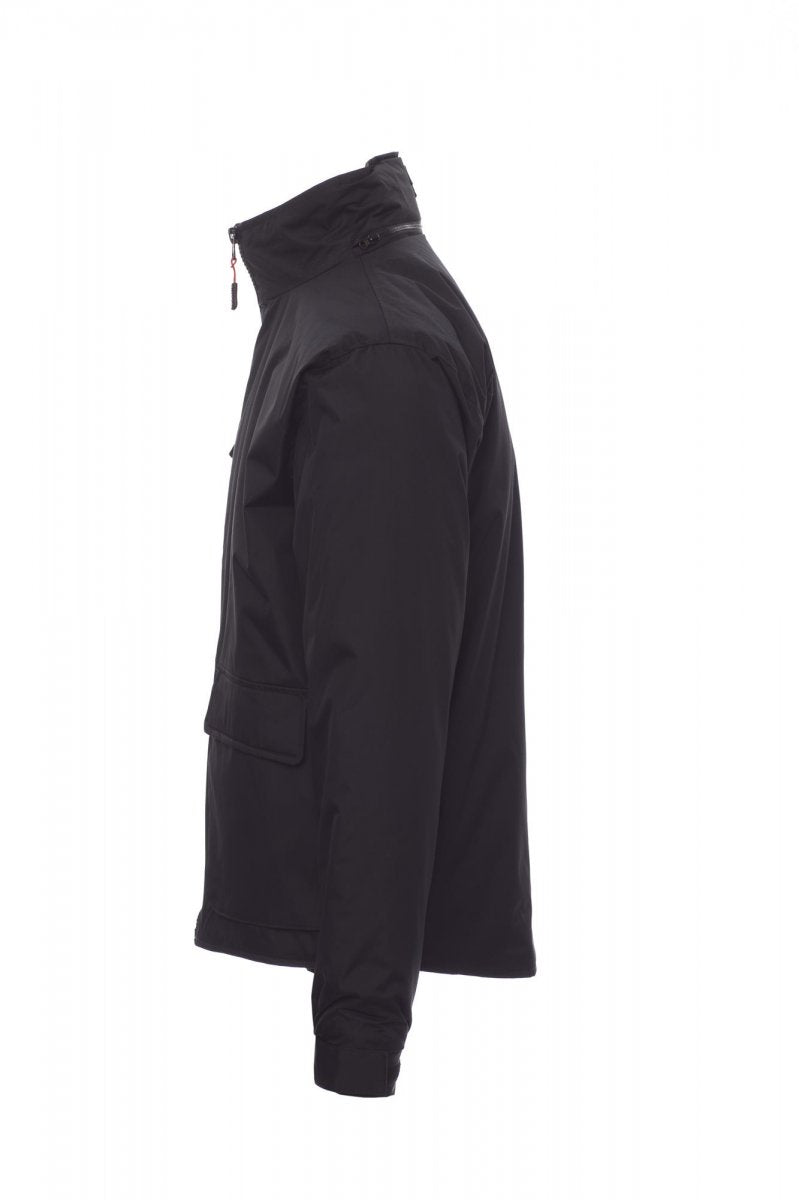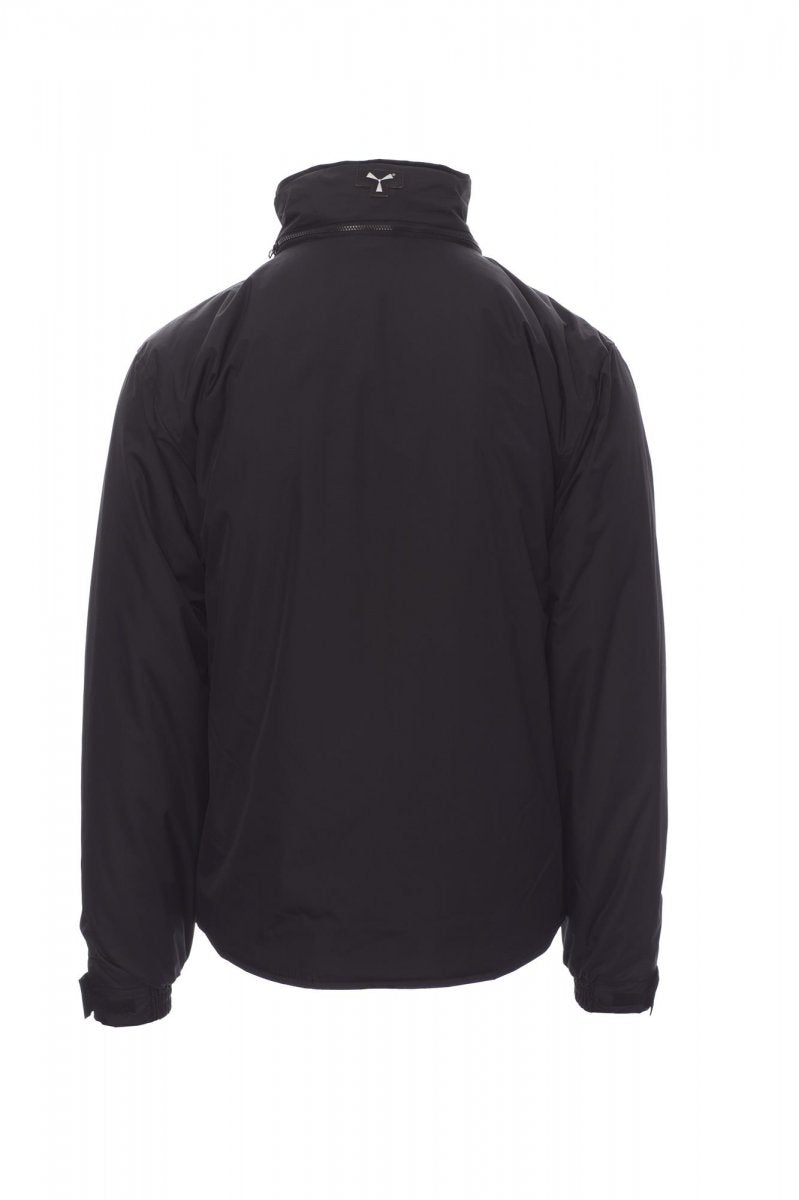 Unisex jas, kunststof rits van 8 mm met metalen runner, uitvouwbare capuchon, elastische manchetten, twee ruime voorzakken met LOCK SYSTEM, twee zijzakken, borstzak voor mobiele telefoon. Binnenzijde: gewatteerd, rits om bedrukken en borduren te vereenvoudigen